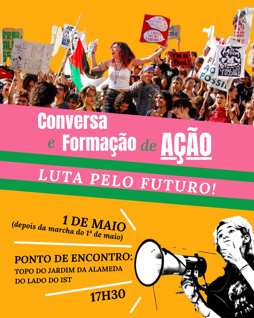 Tags 15MConversa e Formação de Ação | 1 MaioClimáximo 22 Abril 2026 Queres te envolver nas ações da Semana Luta pelo Futuro mas nunca fizeste uma ação connosco? Queres aprender os básicos