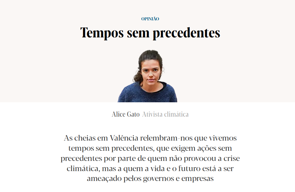 Tags ArtigoParar enquanto podemos – Sinan EdenClimáximo 5 Novembro 2024 Parar enquanto podemos. Estou a pensar sobre esta frase desde que a vi numa faixa no Castelo de São Jorge