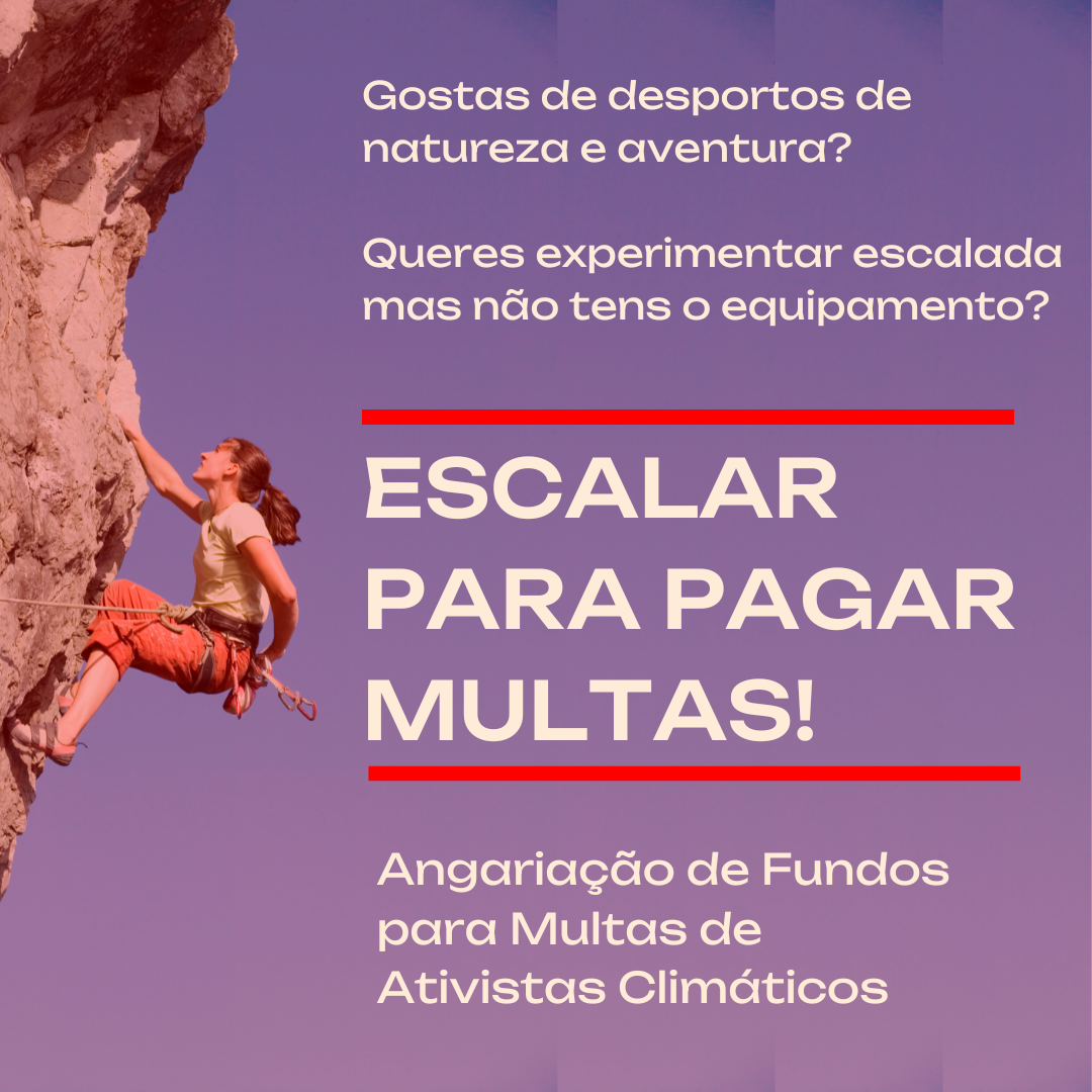 Tags EventoEscalar para pagar multas! Angariação de fundos para multas de ativistas climáticosClimáximo 28 Maio 2024 Gostas de desportos de natureza e aventura? Queres experimentar escalada mas não tens o equipamento? Vem experimentar escalar numa falésia