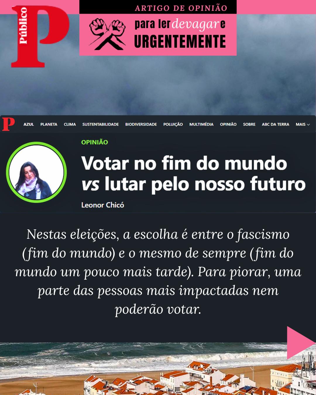 Tags ArtigoVotar no fim do mundo vs lutar pelo nosso futuroClimáximo 6 Fevereiro 2026 Votar no fim do mundo vs lutar pelo nosso futuro Nestas eleições, a escolha é entre o fascismo (fim do…