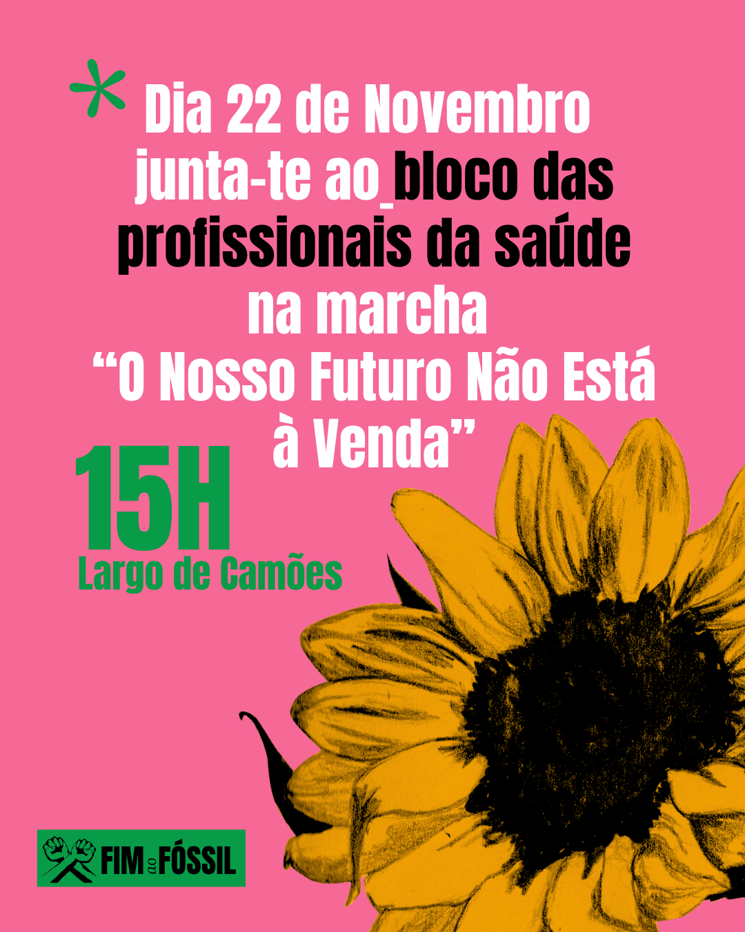 Profissionais de saúde juntam-se à luta pelo colapso climático e estão prontos para marchar pelo Fim ao Fóssil até 2030 no dia 22 de Novembro, às 15H, no Largo de Camões em Lisboa.