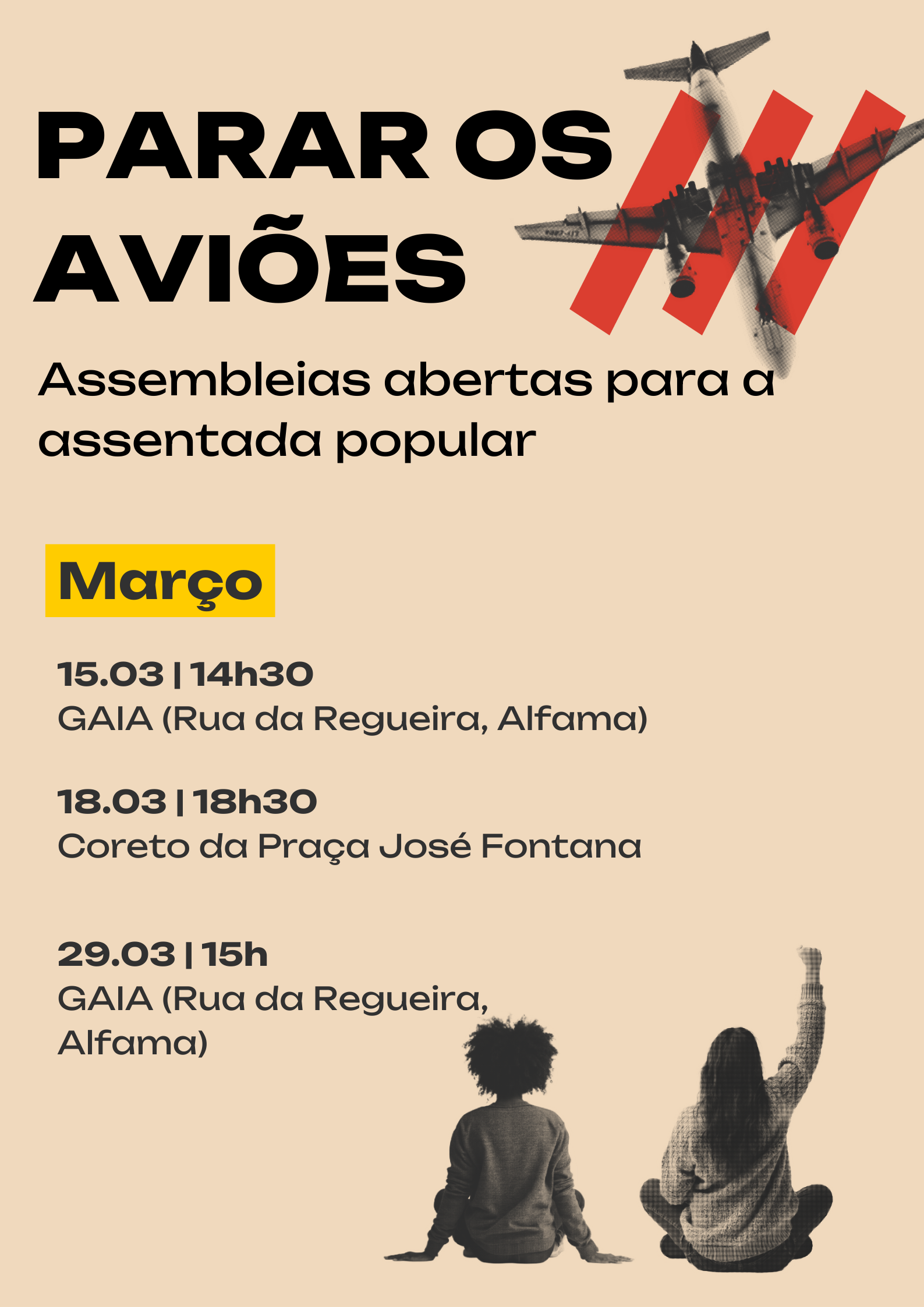 Parar os aviões: Assembleias | 15, 18, 29 Mar