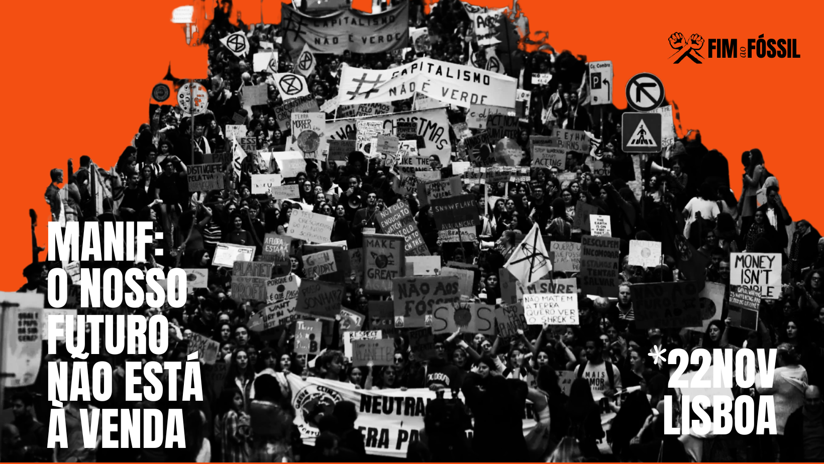 Convocatória Manif O Nosso Futuro Não Está à Venda! | 22 Nov, LisboaClimáximo 19 Outubro 2025 CONVOCATÓRIA O Nosso Futuro Não Está à Venda! Fim ao Fóssil até 2030 Manifestação convocada pela Greve Climática Estudantil Lisboa