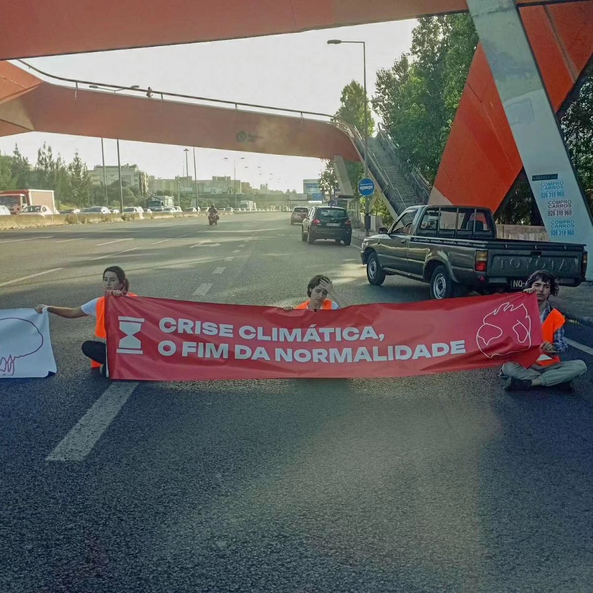 “Os governos e as empresas declararam guerra à sociedade e ao planeta.” Ativistas bloqueiam segunda circular. Climáximo 3 Outubro 2023 Esta manhã, um grupo de trabalhadores e estudantes do Climáximo bloquearam o trânsito na segunda circular, em Lisboa, em frente