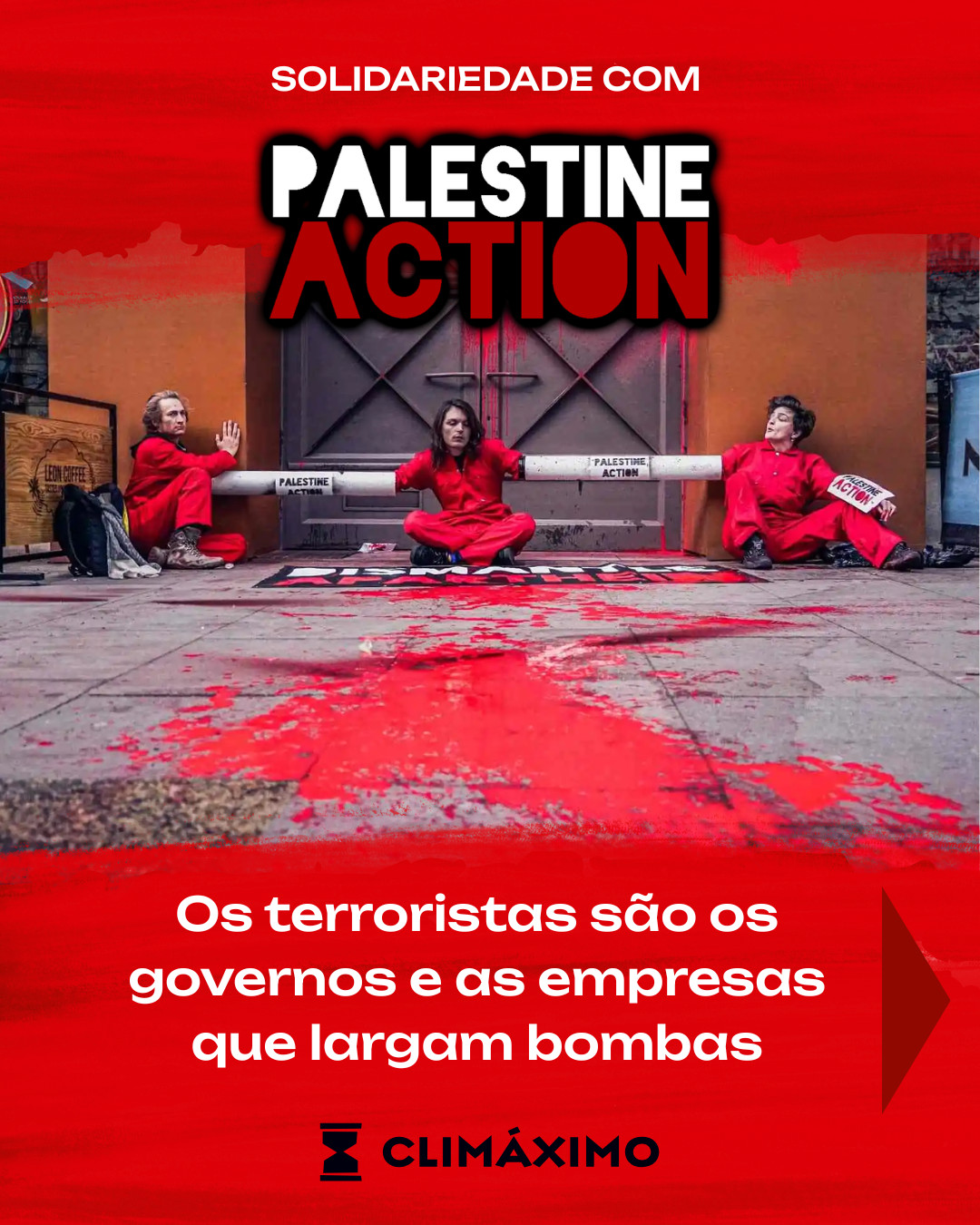 Solidariedade com Palestine ActionClimáximo 9 Julho 2025 🇵🇸 Opomo-nos ao genocídio, apoiamos Palestine Action! // We oppose genocide, we support Palestine Action! Palestine Action é um grupo