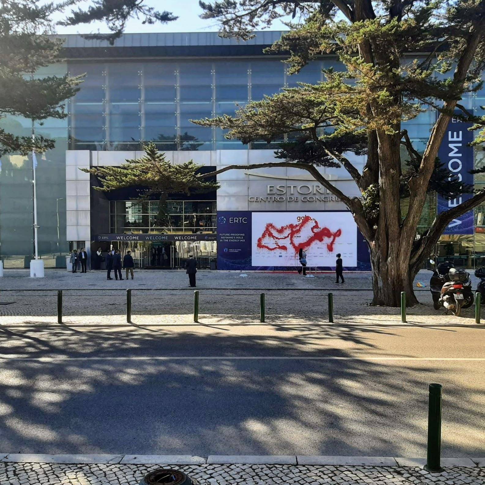 This morning, supporters of Climáximo interrupted the European Refining Technology Conference (ERTC), taking place at the Estoril Congress Centre, stopping the morning session with GALP and stating that “this criminal meeting where plans are being made to annihilate humanity is unacceptable”, before scattering red powder across the stage. Outside, the façade of the building was painted red, covering the logos of companies such as GALP and Shell, marking them as entities with blood on their hands.