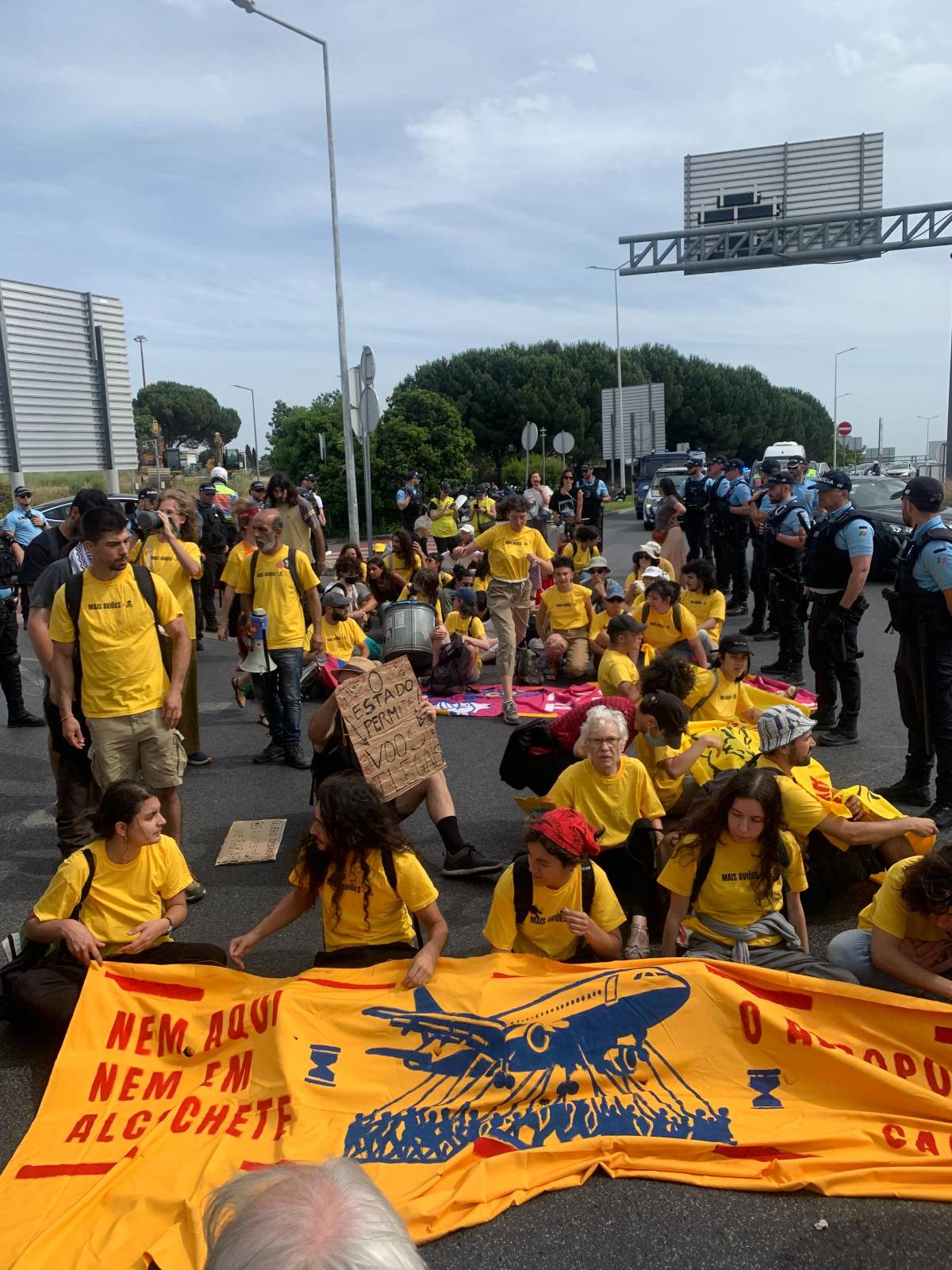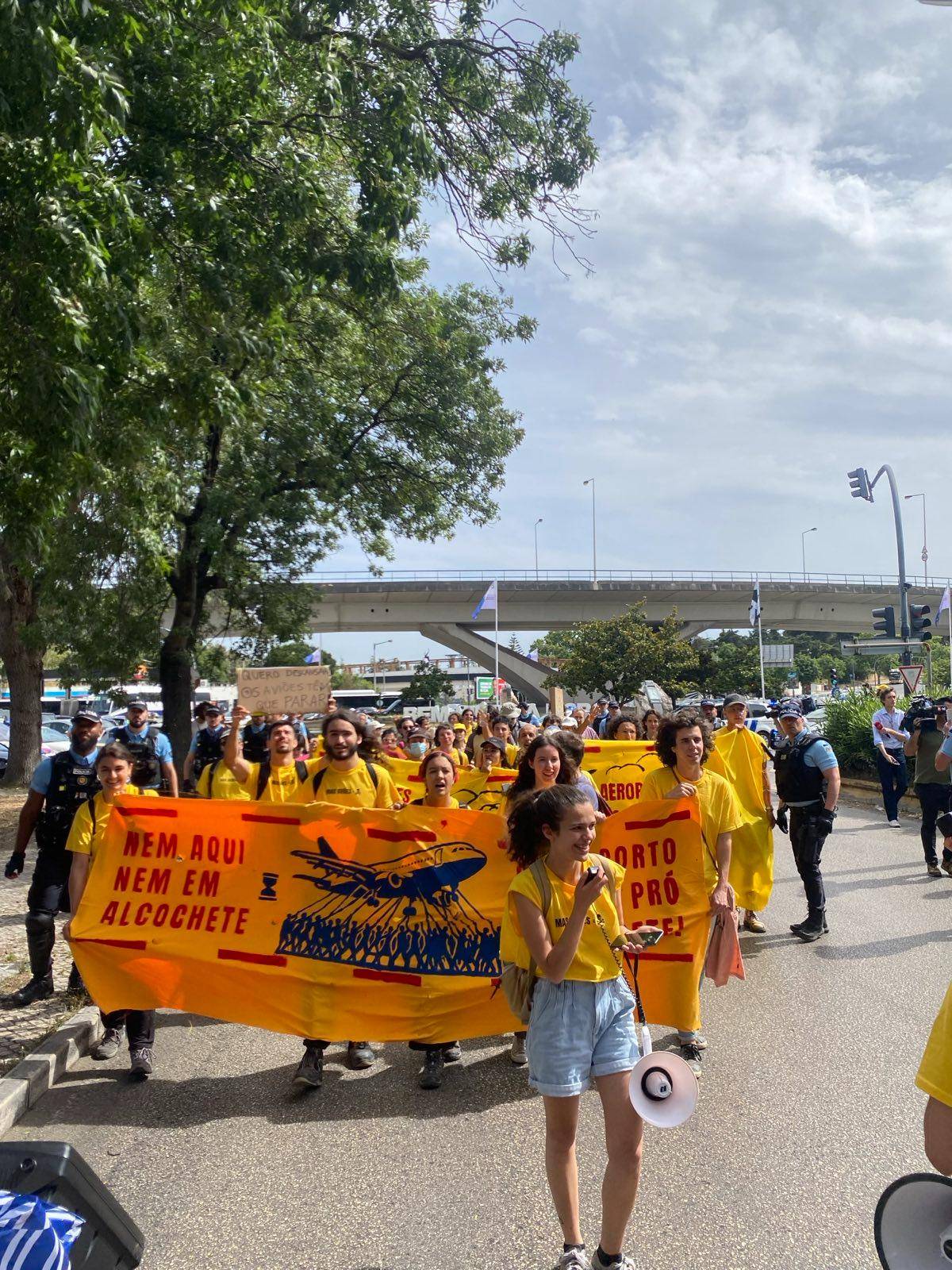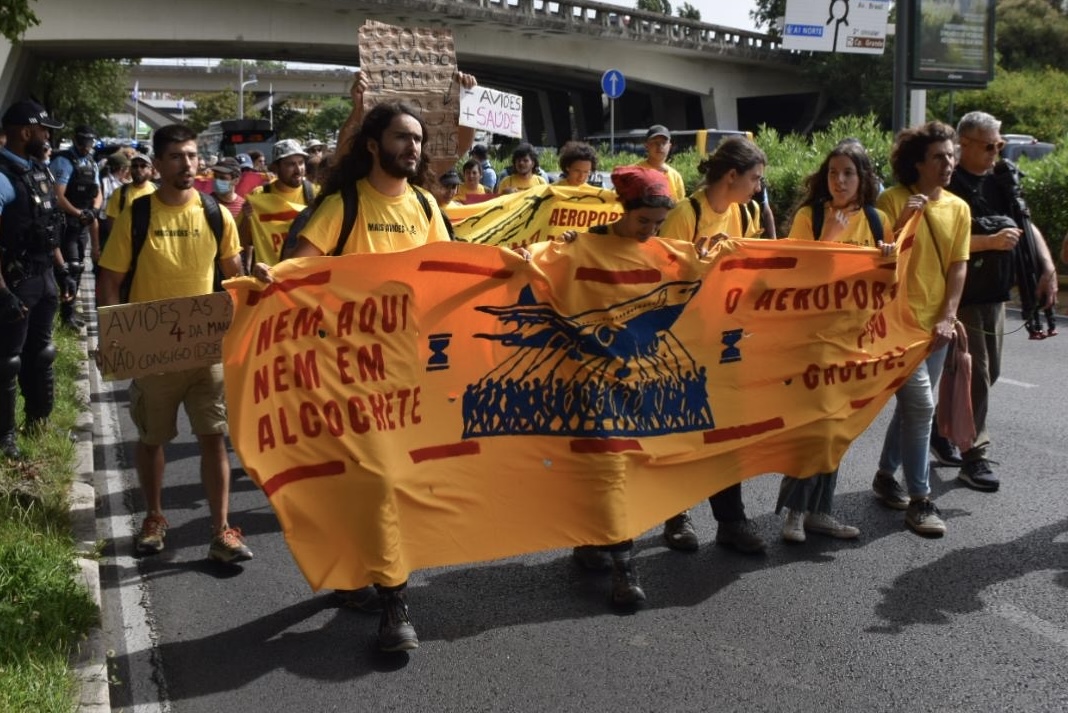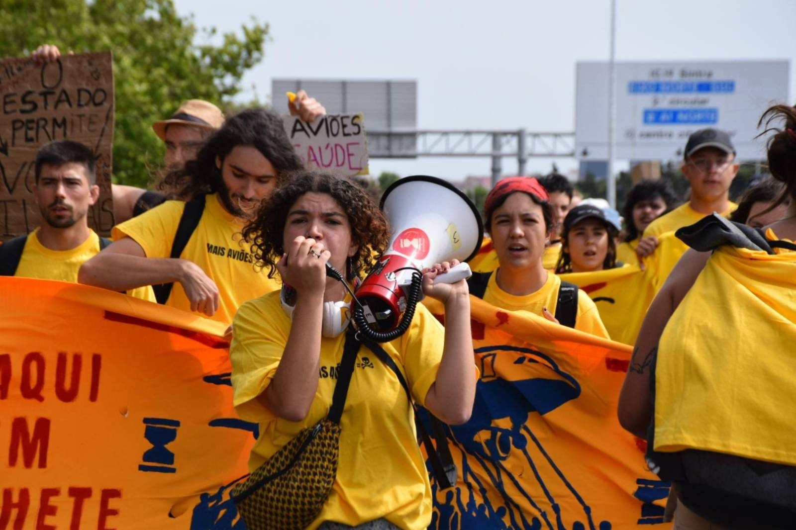 Hoje várias dezenas de pessoas marcharam até ao Aeroporto de Lisboa num protesto, sobre o mote “Parar os aviões” com o objetivo de fazer uma “assentada popular para cancelar novos projetos de expansão da indústria da aviação, cortar emissões, travar a crise climática e garantir transportes públicos grátis para todos”.