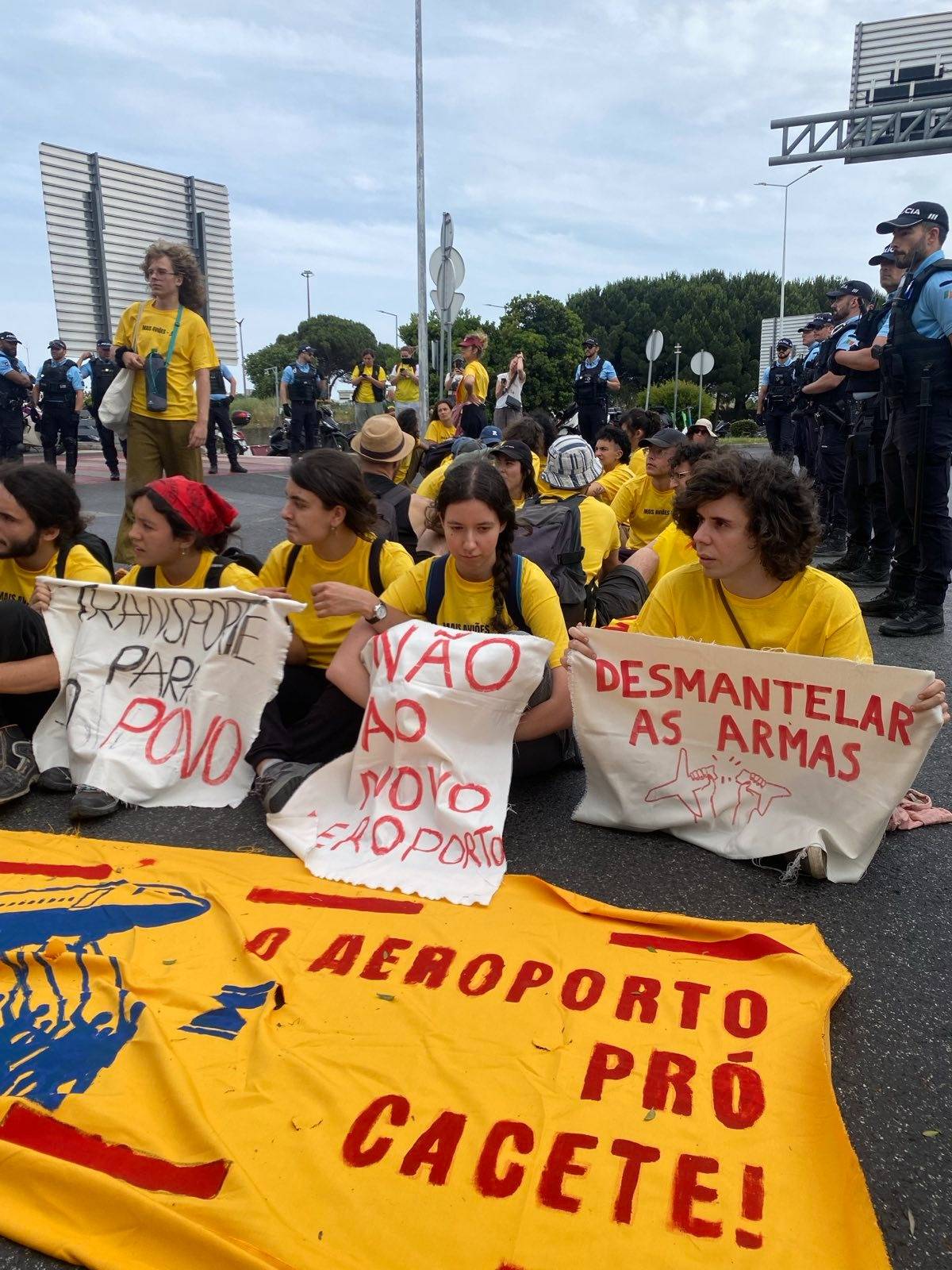 Dezenas de pessoas em “assentada popular” convocada pelo Climáximo disromperam as vias de acesso rodoviário ao Aeroporto de Lisboa.