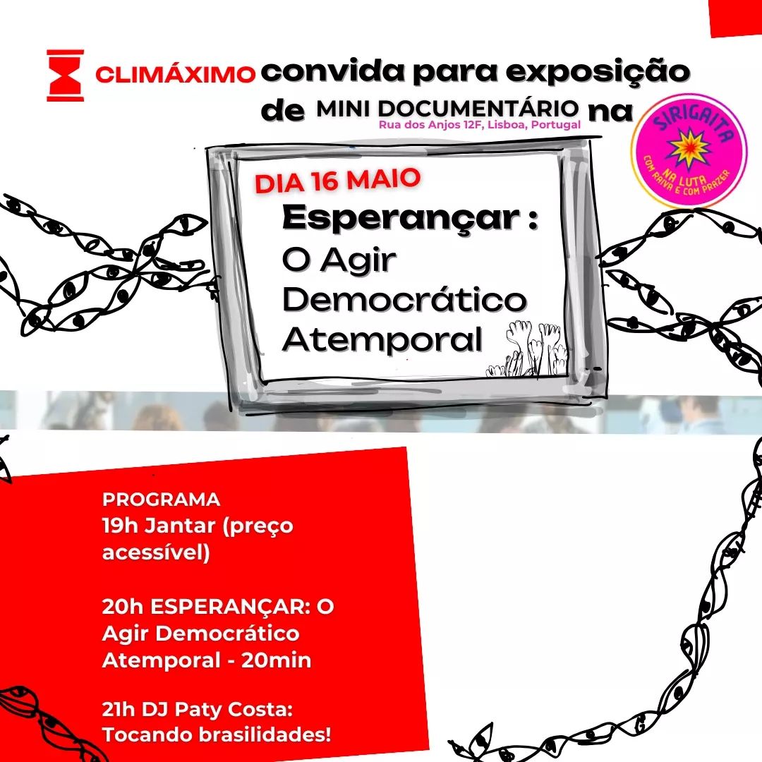 Climaximo e Sirigaita convidam a para a estreia de exibição dia 16 de Maio no @sirigaitalisboa (Rua dos Anjos 12, Intendente)