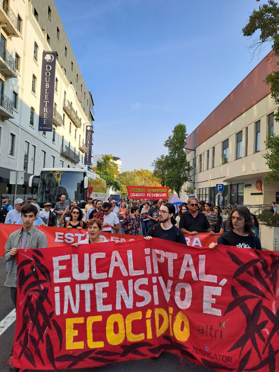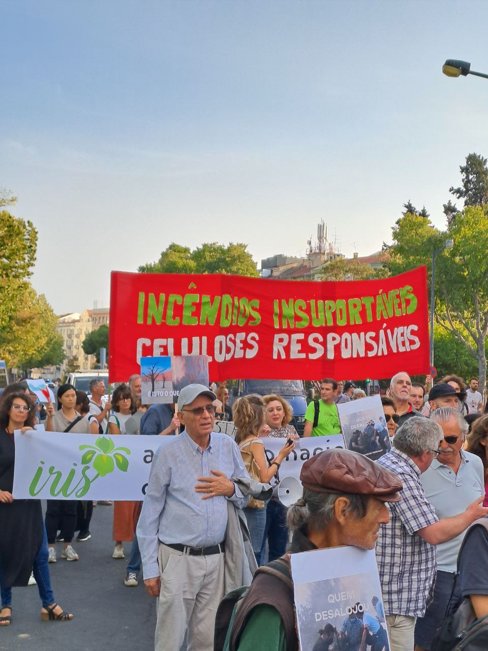 Mariana Rodrigues, a 29-year-old worker and the other protest participants said: “We are mourning the 7 people who died in this week’s fires, and we are fighting so that the government and Navigator don’t continue to kill. This fire was set by the governments and companies that caused the climate crisis, but it wasn’t them who fought the flames: it was ordinary people, protecting themselves and others from the destruction they didn’t cause. It has to be us, the people, to stop the social and climate collapse they are leading us towards. We need to stop the war they are perpetuating against people.”