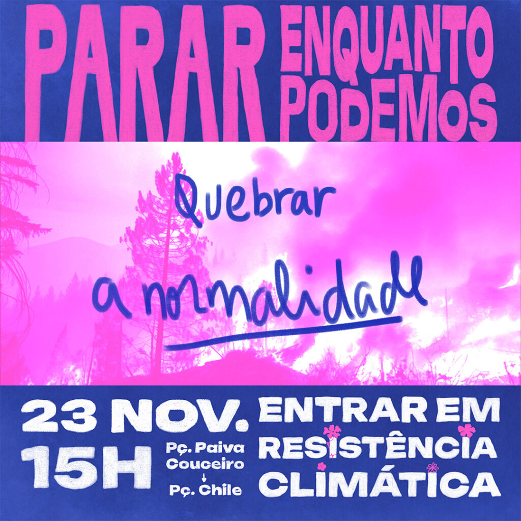 Dia 23 de Novembro não pode ser um sábado normal em que agimos como se estivesse tudo bem, quando estamos em risco de perder tudo. Enquanto governos e empresas fazem mais planos para enriquecer à custa da nossa morte, não podemos ir ao café, às compras, trabalhar, almoçar, estudar ou ficar em casa como se isto fosse aceitável. Enquanto eles planeiam condenar à morte as pessoas à nossa volta, não as podemos deixar continuar o seu dia normalmente.