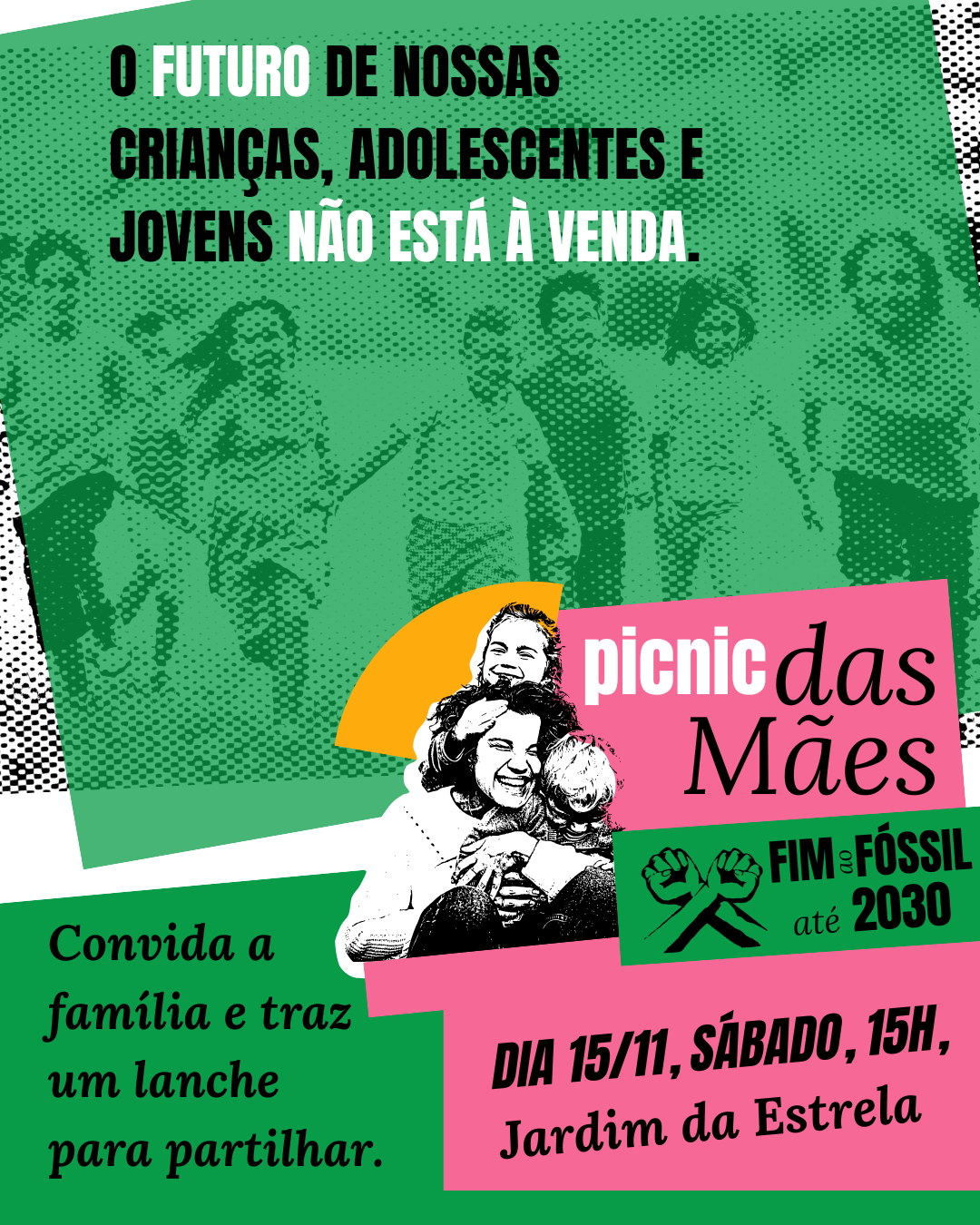 E no dia 22 de novembro, juntamo-nos num bloco de mães e pais que lutam pelo fim ao fóssil – como um ato de amor, proteção e cuidado com os nossos filhos e filhas.