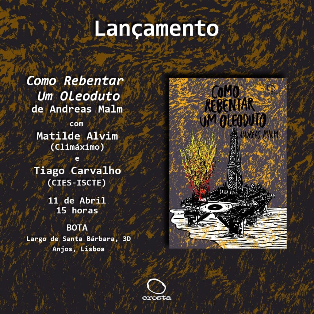Vamos estar no lançamento da edição portuguesa do livro “Como Rebentar Um Oleoduto” de Andreas Malm.