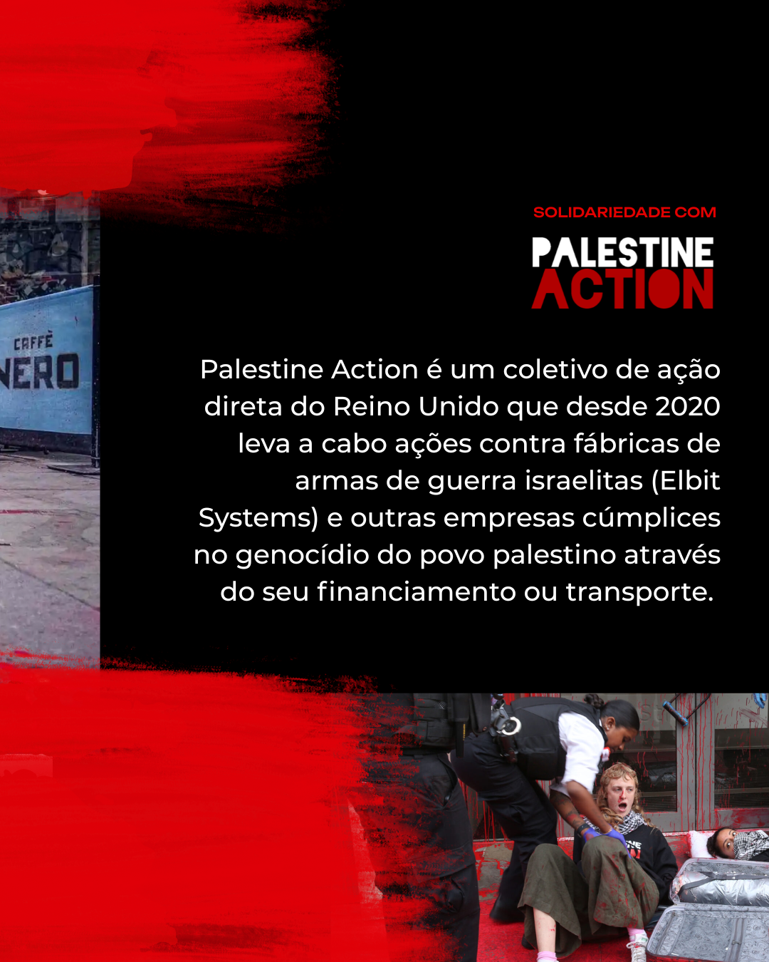 Solidariedade com Palestine Action e com todas as pessoas que lutam pela justiça e pela vida