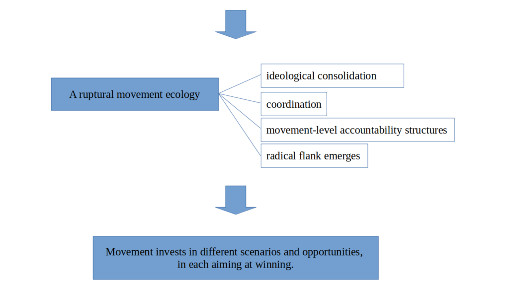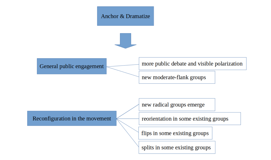 We would also expect a reconfiguration in the movement. New radical groups might emerge. Some existing groups may shift towards the new anchor through a reorientation, others may just flip to the new framework. Some splits might happen within organizations, too.