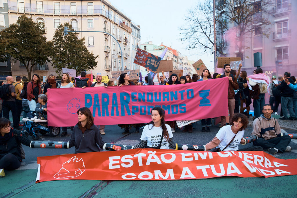 Enquanto os governos assinam acordos que perpetuam a destruição em conferências internacionais, aqui em Lisboa mostramos que há um caminho alternativo. Fizemos o apelo para que toda a sociedade resista contra a violência da crise climática, atuando contra as infraestruturas fósseis – verdadeiras armas de destruição em massa – e se junte à luta para desmantelar a indústria fóssil e romper com o sistema atual.