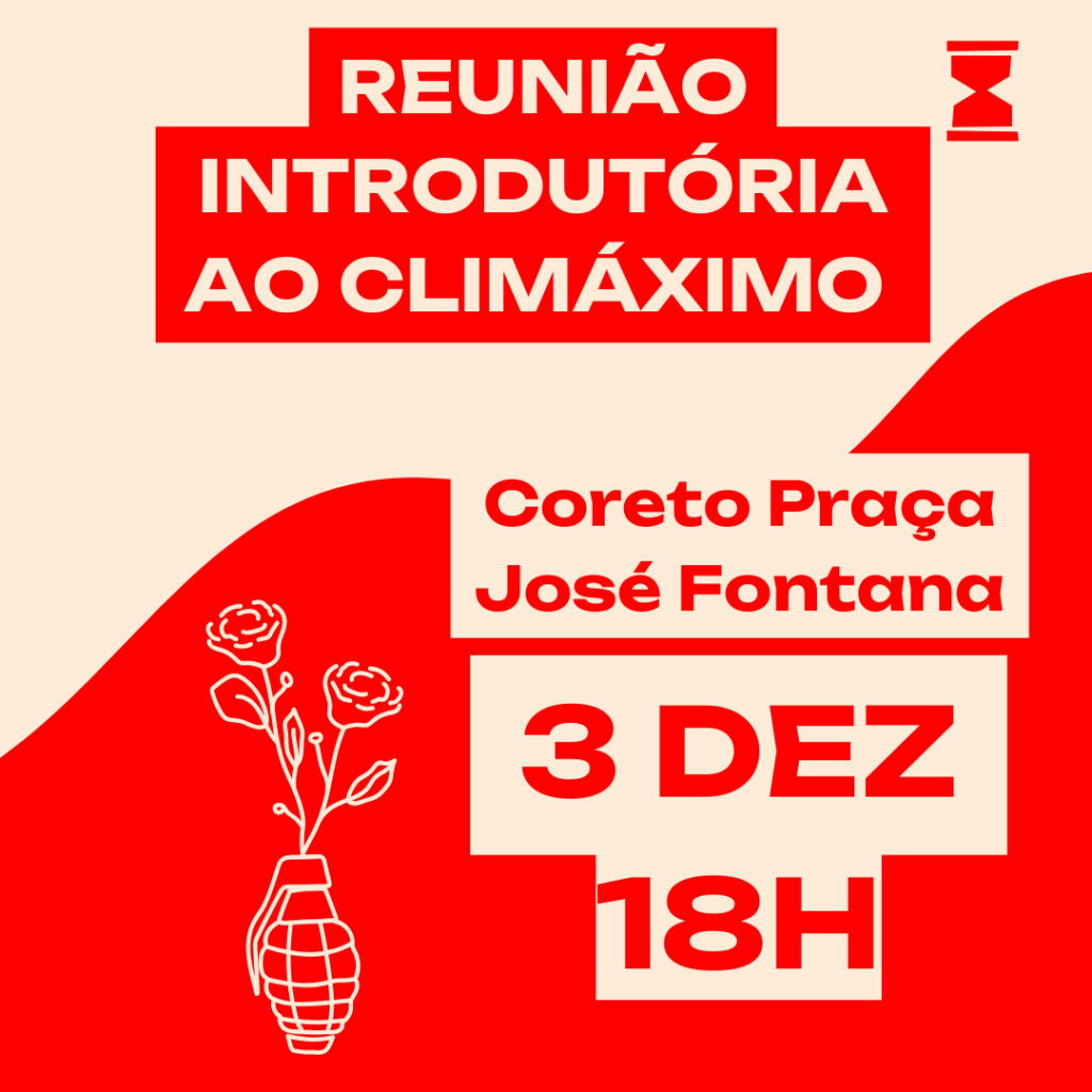 + Formação em Resistência Climática: Dia 14 de dezembro, o Climáximo organiza uma formação aberta a todas as pessoas que queiram juntar-se à luta e atuar diretamente para desmantelar as armas de destruição apontadas por governos e pela indústria fóssil às pessoas. A formação é gratuita mas a inscrição é obrigatória. Regista-te aqui.